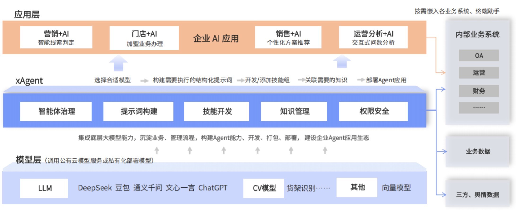 三、突破认知边界,构建AI原生增长范式生成式AI的技术浪潮正重塑商业世界的运行规则,企业若想在这场变革中占据先机,既需要前瞻性的技术布局,更离不开与业务场景的深度耦合。云徙科技推出的xAgent智能体平台,通过深度融合DeepSeek等大模型的自然语言理解与推理能力,正重新定义营销数字化领域人机协作的边界。